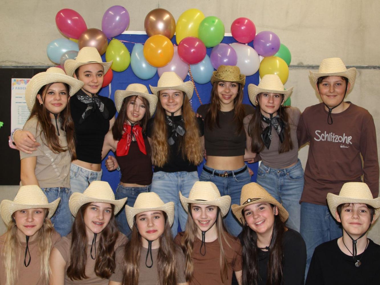 Parallel dazu gab es im unteren Turnsaal großartige Aufführungen: Die Tanzgruppe APT eröffnete mit einem schwungvollen Auftritt, gefolgt von kreativen und energiegeladenen Beiträgen der verschiedenen Klassen. Von Step Aerobic, dem mitreißenden „Dance Battle“ und der packenden Darbietung der 3C als Cowboys & Cowgirls bis hin zu überraschenden Showeinlagen – das Publikum war begeistert! Auch die Lehrerinnen und Lehrer bewiesen mit ihrer Performance zu „Uptown Funk“, dass sie nicht nur im Unterricht, sondern auch auf der Tanzfläche eine gute Figur machen.
