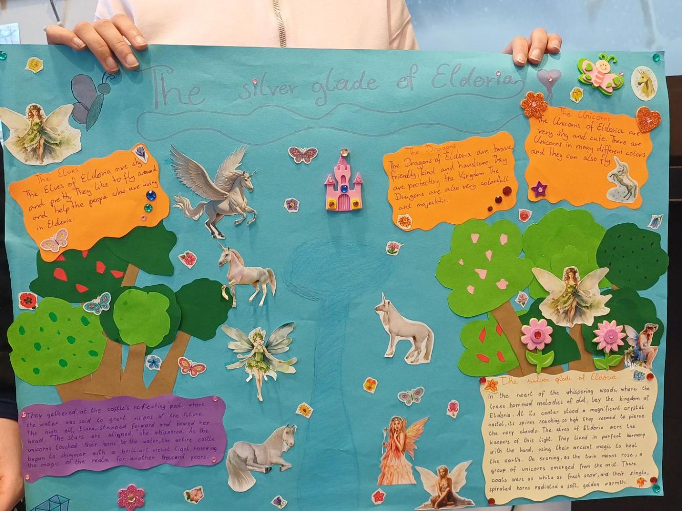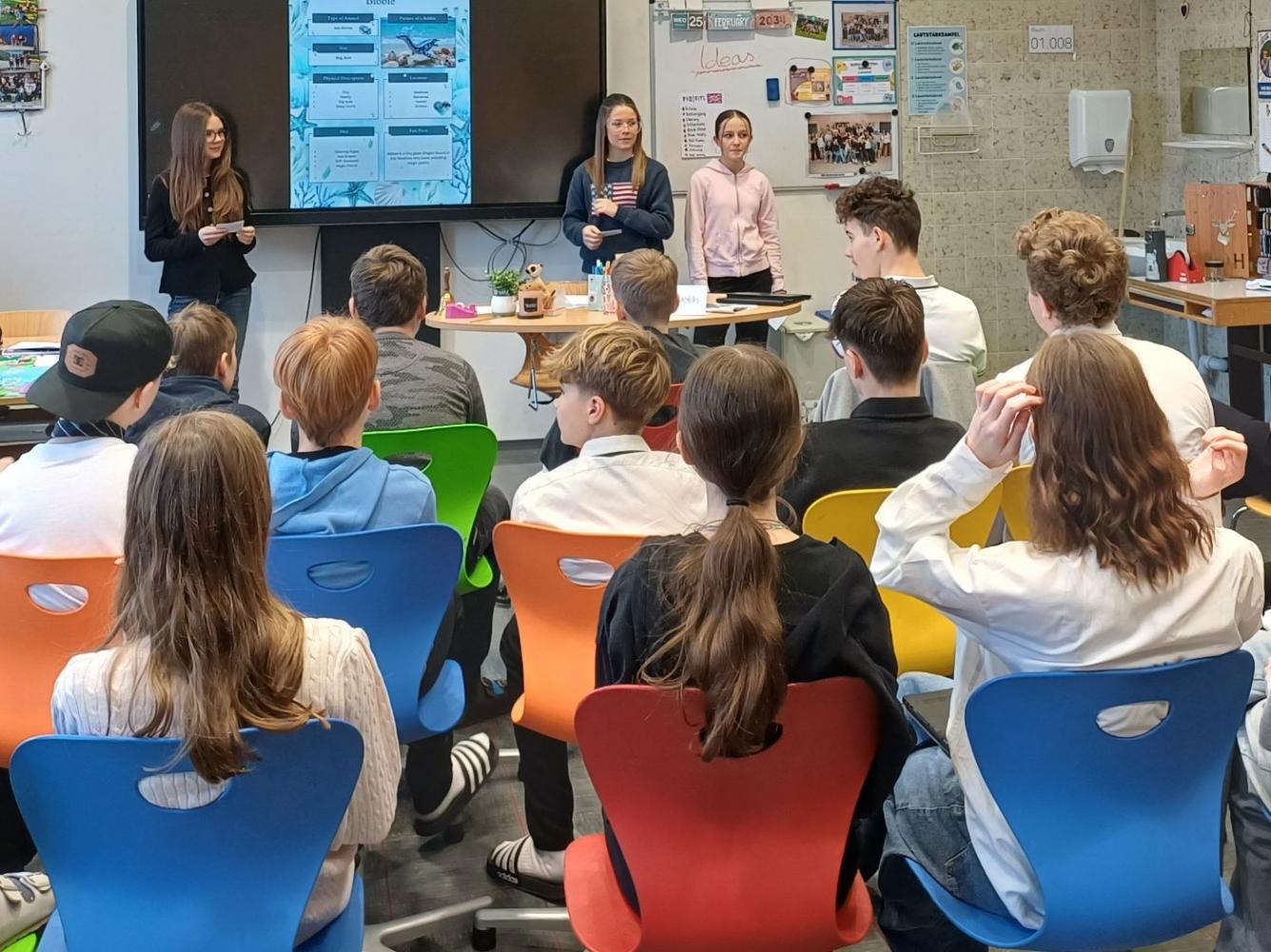 In the first four lessons we played a few games, did exercises in our books and of course only spoke in English! In the fifth lesson we worked on our own projects. Some people did a new band, some a new Netflix show and so much more. Everyone did a fantastic job and finished their projects by Friday and presented them in front of their class.