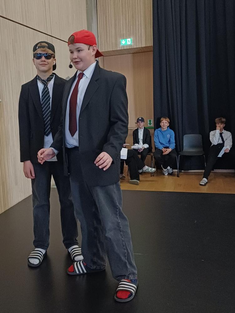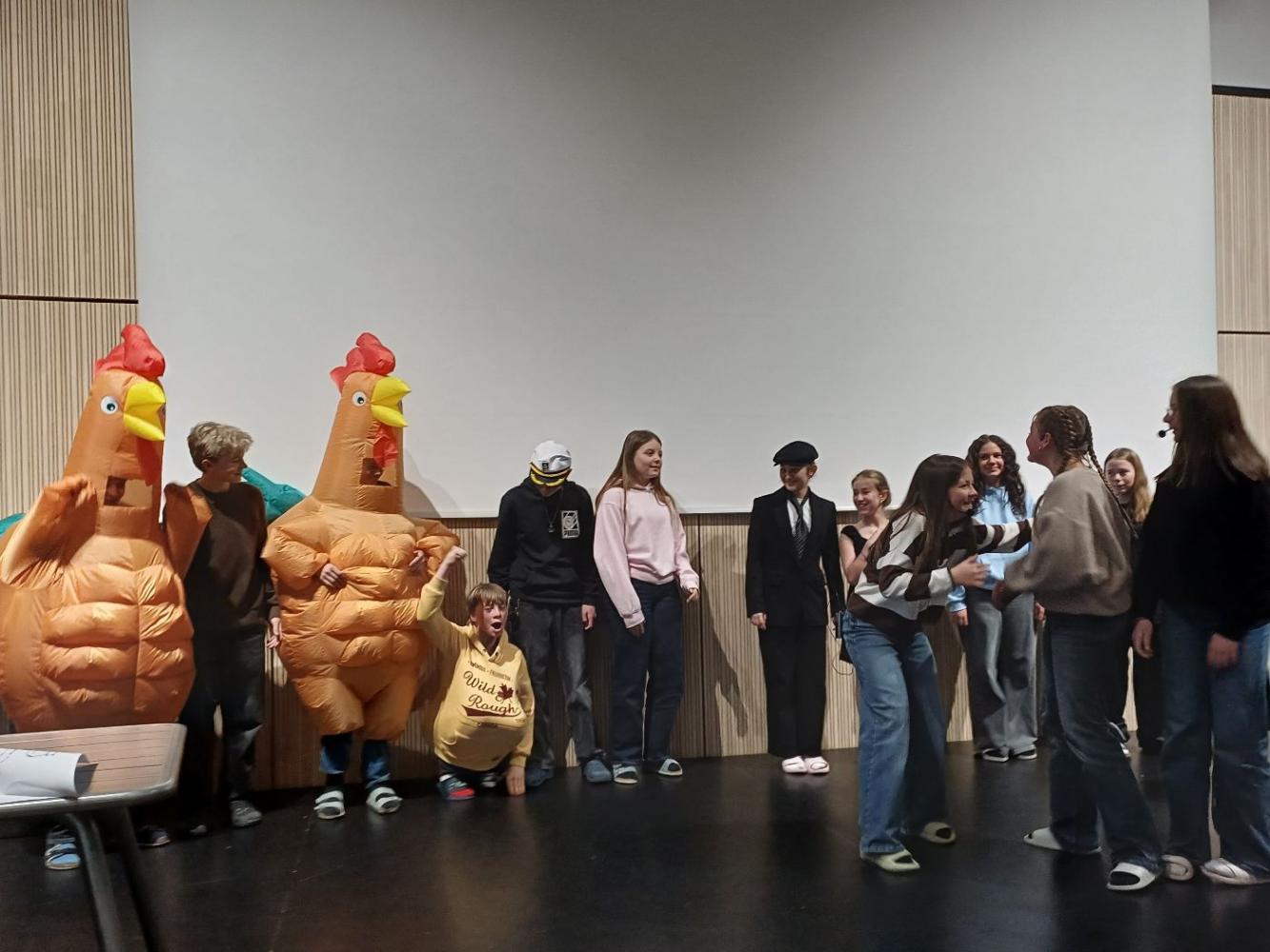 In the sixth and last lesson of the day we worked on our plays. All four groups did their own show with one of the teachers. The groups worked really hard and had a finished play ready for Friday. Then on Friday we performed them out in front of our parents. Our parents were invited to see our shows and so many of them came.